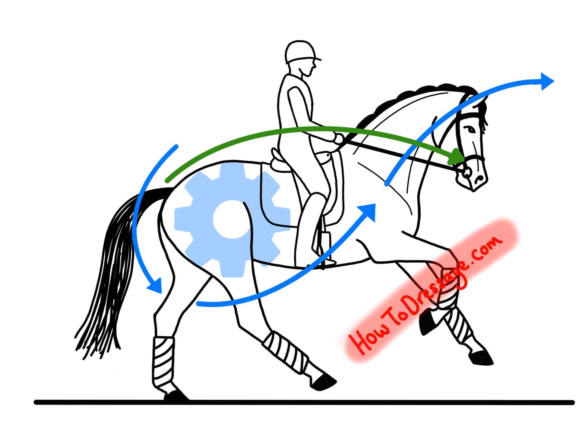 Správné shromáždění koně, přijetí na otěž, skutečné "vzetí koně pod sebe" nevychází ze síly ruky. Vychází z pružné pánve, z aktivního, ale měkkého středu těla, z psoasu, který je schopen se uvolnit i znovu aktivovat – klidně až po třiceti minutách ježdění, kdy teprve dochází k hlubšímu propojení těla.